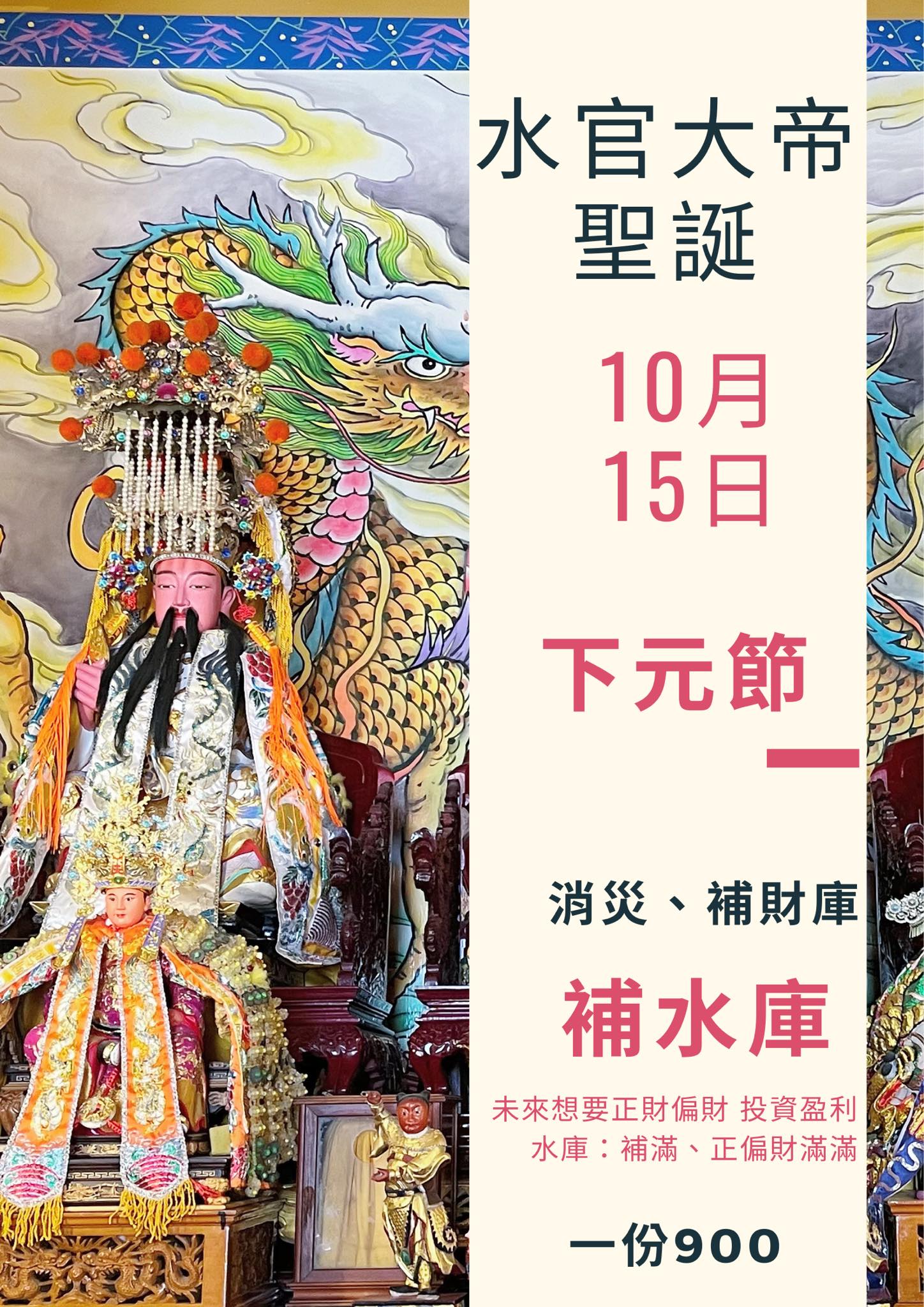 下個月11/15 (農10/15 )就是我們水官大帝聖誕!